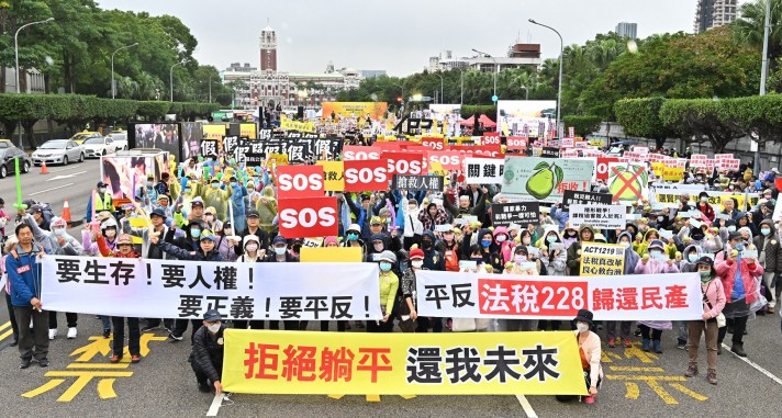 【記者陳宜萍/台北報導】總統府前的凱達格蘭大道,一向為爭取民主人權發聲的殿堂,青年面臨現今低薪、通膨、高房價因而選擇不婚、不生,少子化的國安危機正如海嘯般襲來,請問候選人們除了搶凱道造勢的頭香之外,這些問題都看到嗎?12月19日下午,來自全台各地的民眾以及鄉鎮里長,為了自身的生存問題,自發性集結在凱道,請假頂著寒風參加由平反1219行動聯盟、法稅改革聯盟主辦,近20個團體協辦,共同發起的「拒絕躺平 還我未來」大遊行,提出全民共同關注的重要訴求:「公平正義,人民第一」、「平反假案,歸還民產」、「翻轉經濟,人人有未來」、「要生存、要人權、要正義、要平反!」。