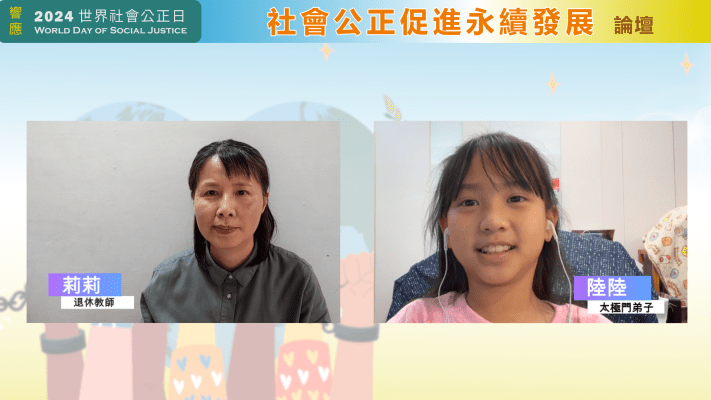 【記者 陳嘉玲/台北報導】現今台灣存在稅收超徵、稅制不公等亂象。響應「世界社會正義日」,2月20日聯合國NGO世界公民總會、太極門氣功養生學會及世界之愛和平總會共同舉辦線上分享會「社會公正促進永續發展」,退休教師莉莉表示,延宕28年的太極門案凸顯台灣司法與稅法上不公正的醜陋真相!法稅改革聯盟志工/小學生陸陸希望選上的總統可以明辨真假、好壞、對錯,把土地還給太極門,也還給太極門公平正義。