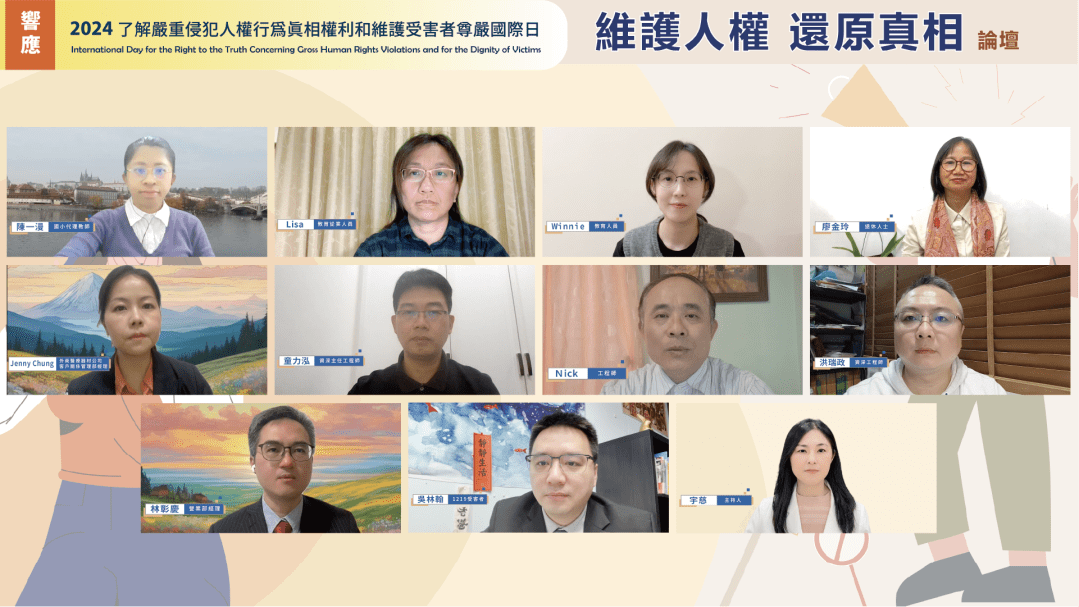 【記者林宸/桃園報導】當今區域戰爭、公權力迫害等諸多背離人權之事仍未停歇,人類面臨生存的威脅與人權的迫害,正需要良心正義之士,為世界永續開啟善機。呼應「了解嚴重侵犯人權行為真相權利和維護受害者尊嚴國際日」,由聯合國NGO世界公民總會、聯合國NGO世界公民總會台灣總會、太極門氣功養生學會等民團,在3月24日舉辦「維護人權 還原真相」論壇,邀請到國小教師一漫與Lisa分享良心教育對教育及社會的影響力。