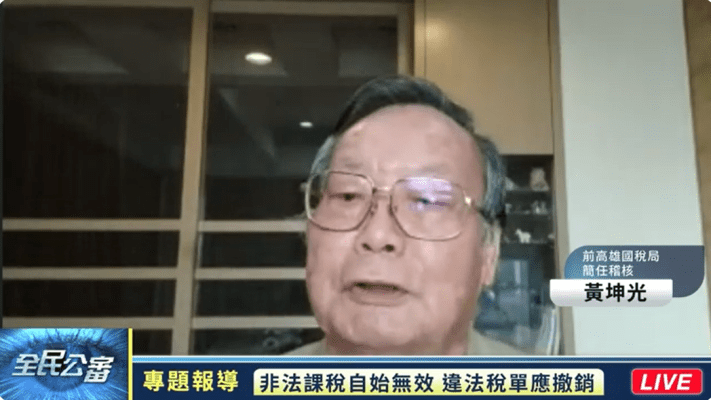黃坤光提到,「課稅」只有合法和非法之分,所有的法律都在追求真相,以給予真實法律主體、法律客體、適用法條法定權責,三者若有一項虛假,都是失真的,應廢棄判決或應撤銷的行政處分。政府非法課稅是以公權力強奪人民財產,明知故犯者的公務員負有刑法第129條的違法徵收罪責。任何人都不能增減課稅所得名稱或類比適用,而以無對象的虛擬不能實現收入推算,以虛擬所得課徵實體所得稅是對人民最嚴重的課稅迫害!