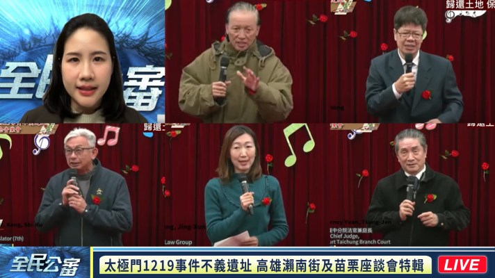 【記者黃稚丞報導】太極門案從最初的刑事判決三審無罪,到監察院證實檢察官八大違法、國稅局七大違法;超過300位跨黨派立法委員的支持,這個案件最荒謬之處,在於政府以莫須有的收入來課徵實體稅金,這在全球實施所得稅的國家中都是前所未見的。1月12日WPN全民公審節目太極門1219事件不義遺址 高雄瀨南街及苗栗座談會特輯,回顧這段歷史,呈現的不只是一個武術修行團體的冤屈,更是整個台灣民主法治的照妖鏡。透過苗栗座談會中專家學者揭露的太極門案真相,呼籲政府落實轉型正義,平反太極門假案,保障人民宗教信仰的自由。