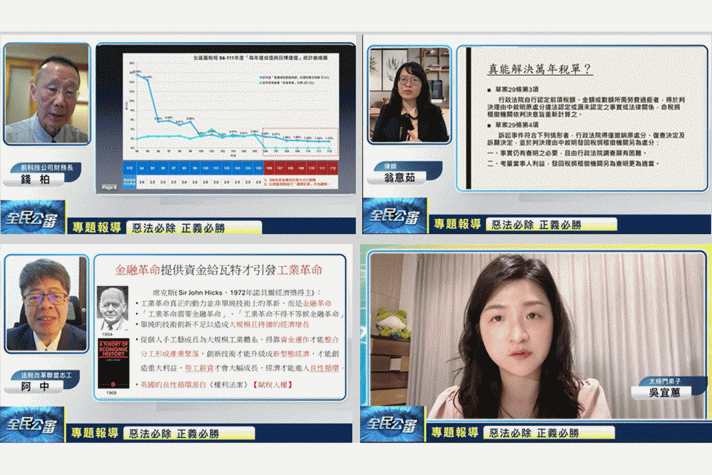 【記者莊啟真/台北報導】財政部公布2024年超徵稅收金額達5283億元,創史上新高,該「還稅於民」或「優先還債」?再次成為熱議話題。然而,政府連年稅收超徵,舉債又不斷上升,背後問題何在《WPN全民公審》以「惡法必除 正義必勝」為主題(https://youtube.com/live/NVwV59gsbQY?feature=share) ,呼籲政府廢除稅務獎勵金解決稅務亂象,修改納保官和稅審官條款,真正落實賦稅人權保障,並揭開所有不法真相,讓台灣成為真正民主法治、有人權的國家。