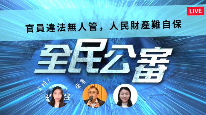 (記者劉星妤/台北報導) 當公權力成為政府機關迫害人民的工具,國家除錯機制又嚴重失靈,「法律之前 人人平等」的憲法原則,是否淪為口號 ? 7月20日《WPN全民公審》線上節目以「官員違法無人管 人民財產難自保」為題,探討包含太極門案、陳青旭案及鍾先生等多個法稅受災案例,邀請真理大學法律系所主任吳景欽教授,以專業的法律觀點,揭露法稅體制中長期存在的「結構性濫權」及「違反正當程序」等不良積習,以及太極門弟子代表Doreen現身說法,表達人民沈痛的心聲。