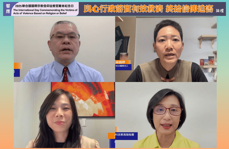 (記者陳曉風/台北報導) 2019年聯合國大會決議將8月22日訂為「國際宗教信仰迫害受難者紀念日」,提醒各國在促進和保護人權方面的責任,無論宗教信仰團體的人數多寡,皆須受到尊重,制止宗教信仰迫害,推動和平,建立相互理解的世界。聯合國NGO世界公民總會等團體於8月22日為響應2025聯合國「國際宗教信仰迫害受難者紀念日」特舉辦《良心行政落實有效救濟 終結信仰迫害》線上論壇,邀請國際學者及各界菁英以國際宏觀的視野,檢視台灣落實宗教信仰自由的現況。