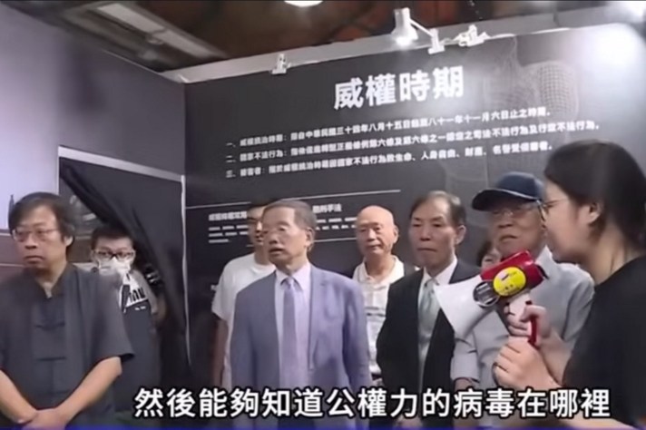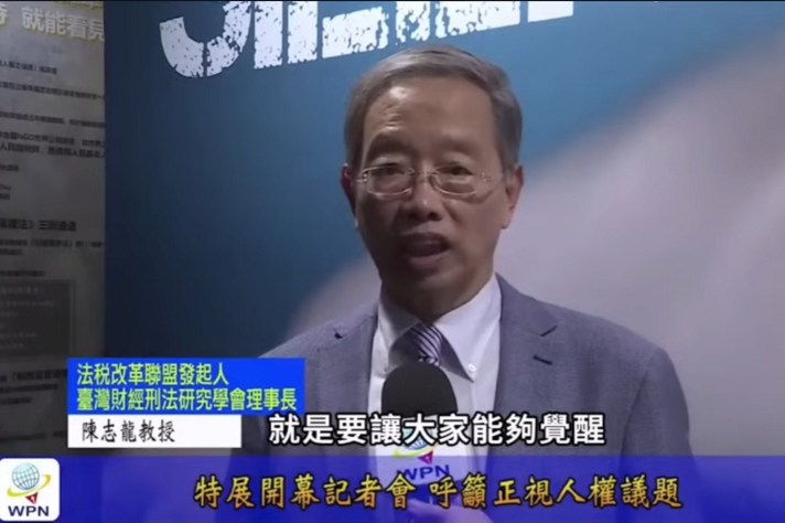 臺灣財經刑法研究學會理事長陳志龍教授說:「這個展覽非常重要,我們籌劃很久,就是要讓大家能夠覺醒,然後能夠知道公權力的病毒在哪裡。」陳志龍帶領大家導覽各個展間特色。他提到,媒體的力量很大的,可以為善、可以為惡,媒體的價值若無法揭發真相,反而成為假新聞、假消息的製造者,甚至淪為不法威權的打手,非常可怕!