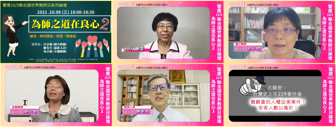 【記者陳怡/台北報導】響應世界教師日,平反1219行動聯盟主辦之全民開講,10月9日首播「正義孔夫子的心聲報乎 … 繼續閱覽 【新聞】政府做錯了!老師們呼籲:認錯改過樹立典範 台灣才有未來