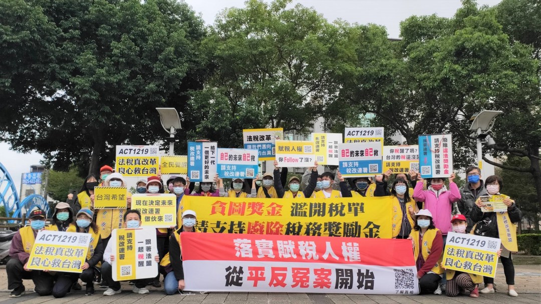 12月10日聯合國國際人權日甫過,12/12法稅改革聯盟一群來自各行各業的志工走上中壢街頭,以開講、拉布條、舉牌、發傳單、機車繞行等方式倡議「廢獎金、救冤案、護人權」。