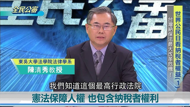 圖一:東吳大學法學院法律學系專任教授陳清秀,在全民公審56集節目中,提出對修正納保法的建言。 納保法從2017 … 繼續閱覽 【新聞】全民公審第56集: 國稅局球員兼裁判?納保法公平性令人質疑